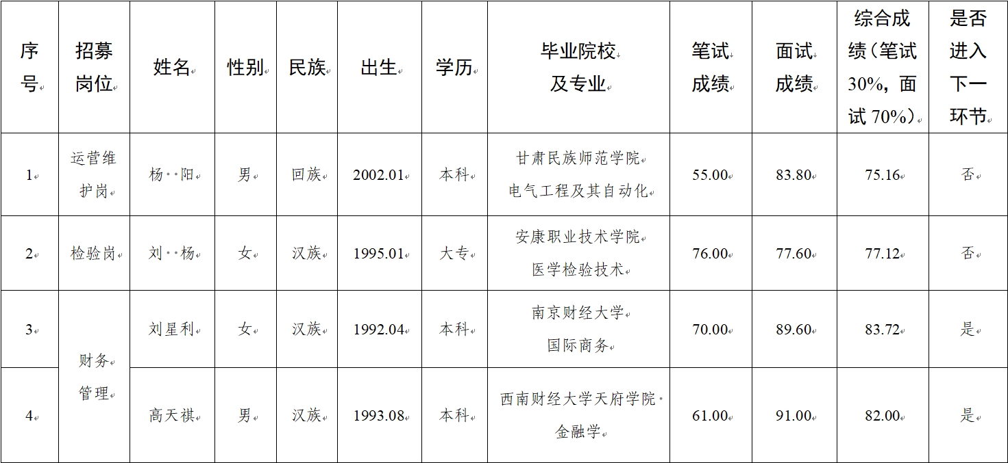水建公司、新能源公司、醫(yī)療科技公司社會招聘人員筆試、面試成績公示